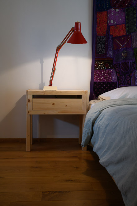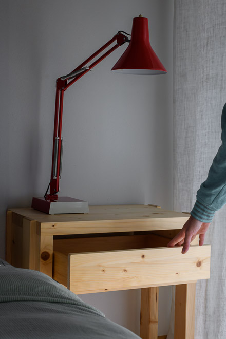 L'ergonomie et la simplicité dictent le design de ces tables de chevet. Elles évoquent une forme de sobriété, en écho aux conditions de vie de l’épicéa massif de montagne qui les compose. Une pièce épurée qui met en valeur la matière brute.